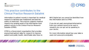 We are a research Practice and if you meet the criteria for a particular study you may be invited to take part. Participation in research is entirely voluntary but can help to improve the future care of patients.